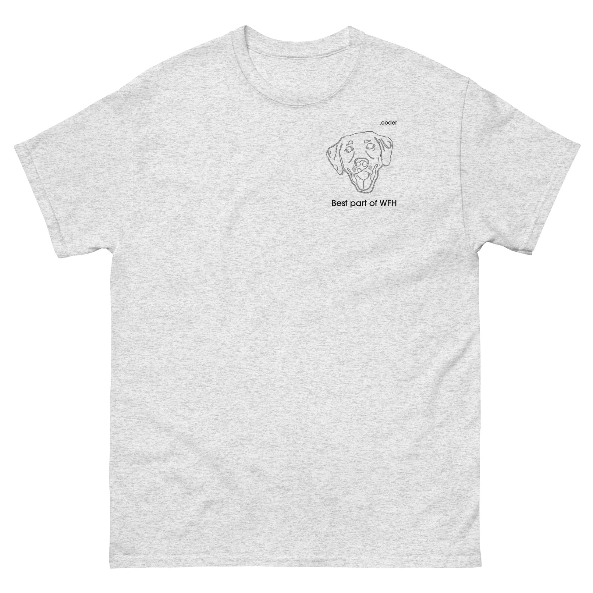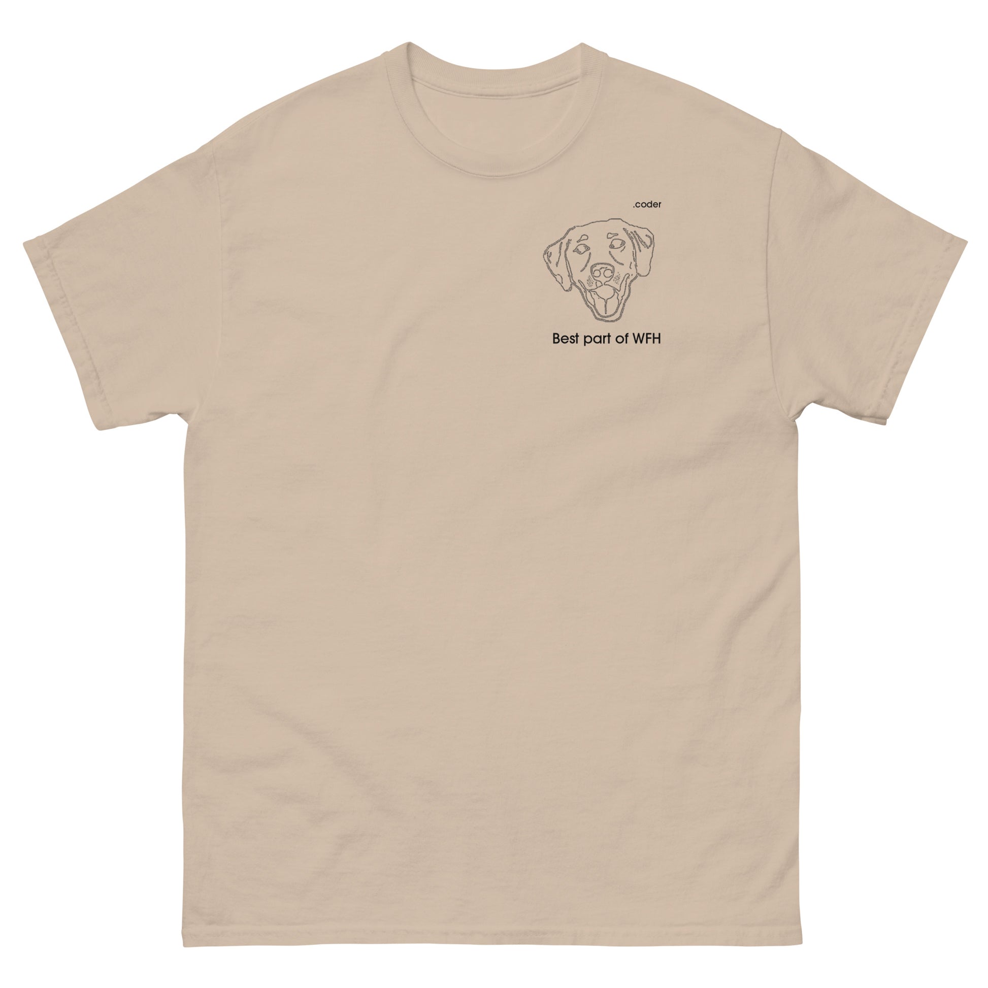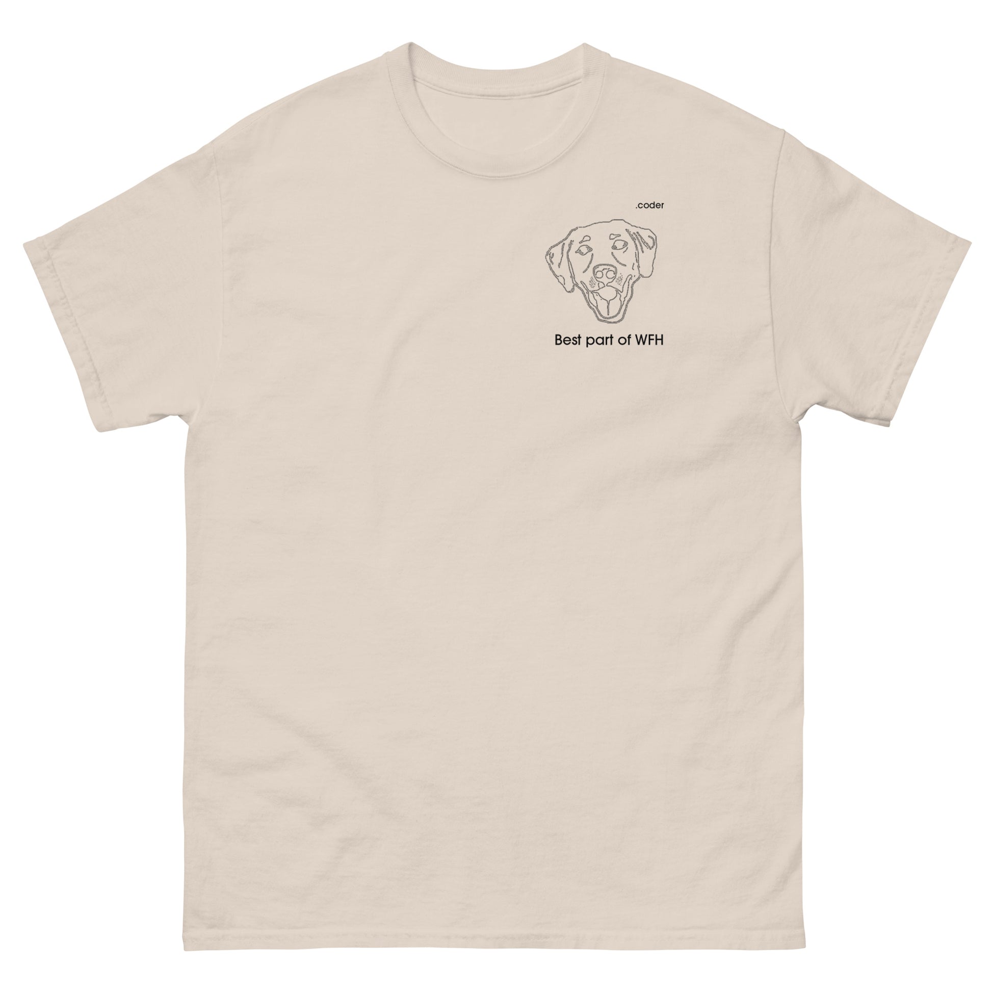 Working from home is great, working from home with your dog is unbeatable. The dog is my own adorable lab, she tends to smile and makes a great shirt model.