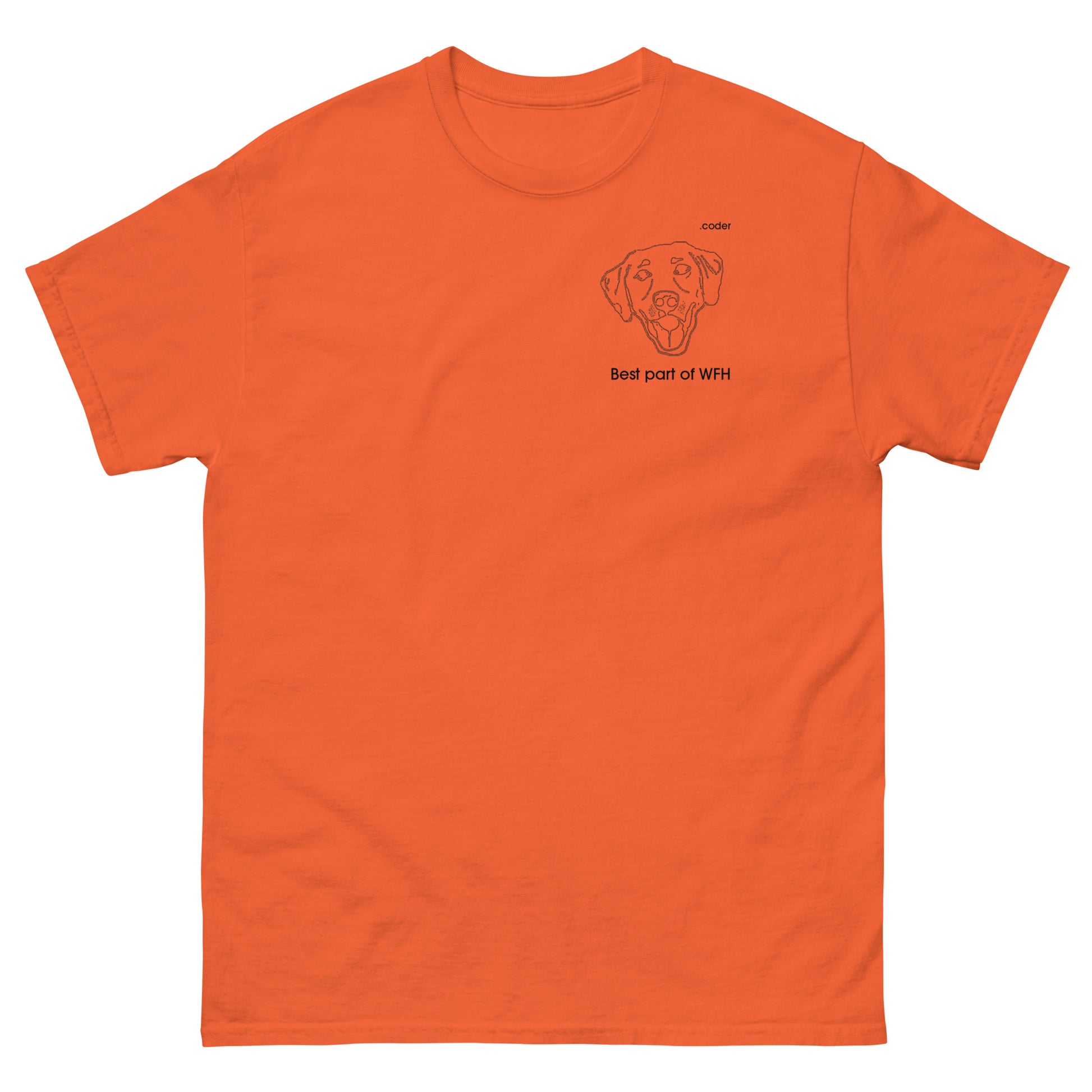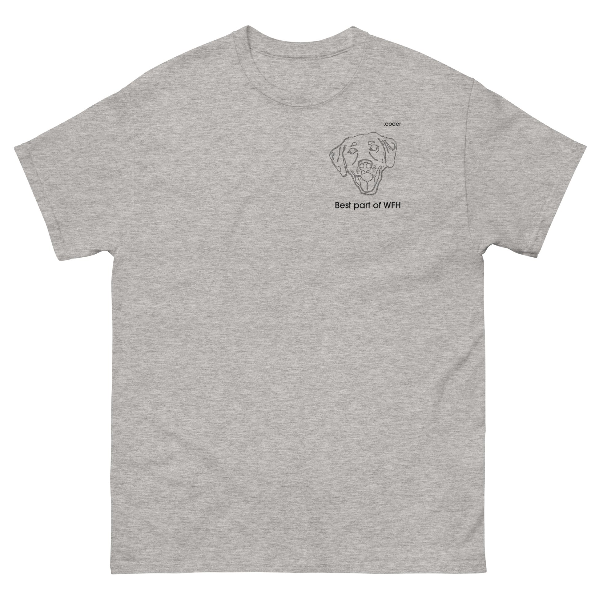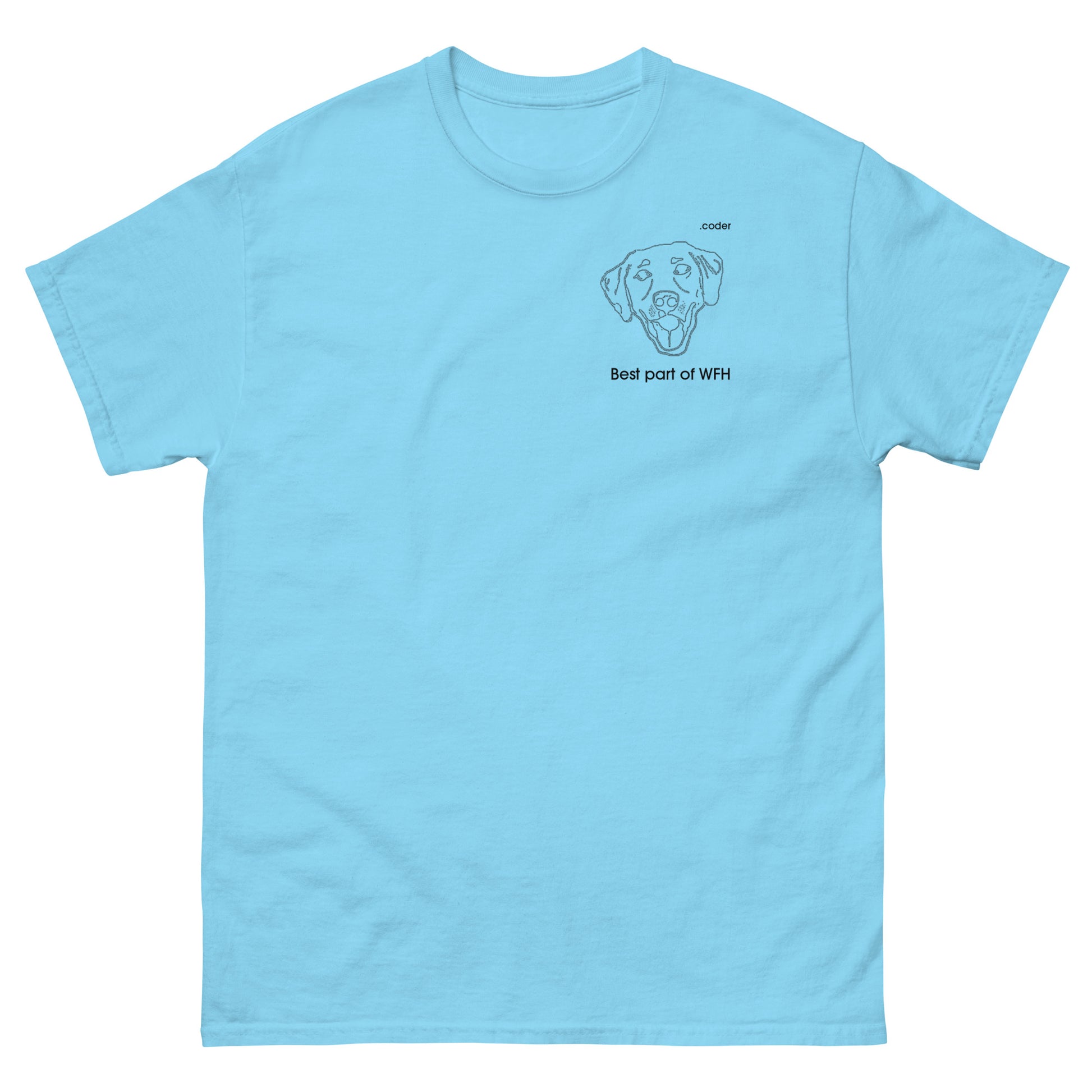 Working from home is great, working from home with your dog is unbeatable. The dog is my own adorable lab, she tends to smile and makes a great shirt model.